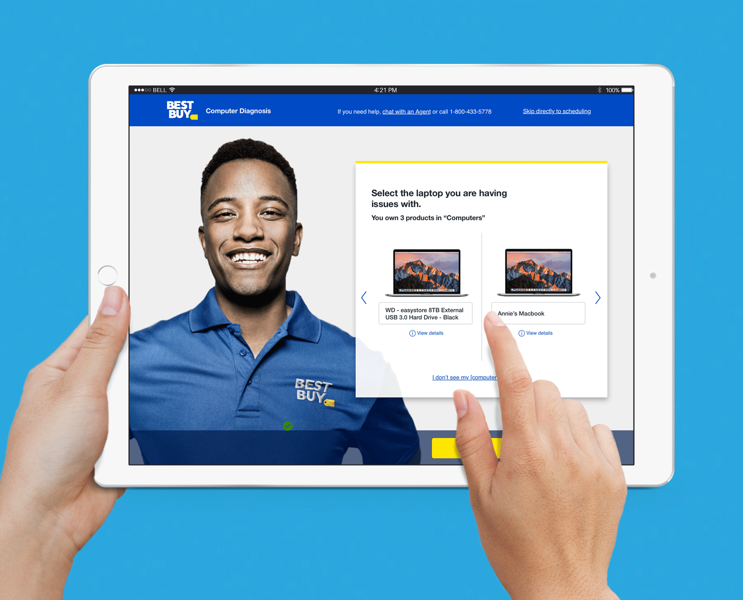 Originally designed for laptop triage, the system's success led to expansion across all Best Buy service areas, demonstrating scalable conversational design and production-quality execution for a Fortune 100 retailer.