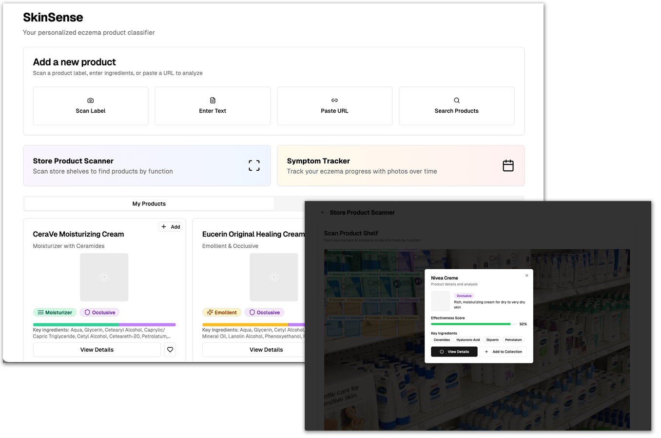 AI-powered prototype that recognizes skincare products in real time, classifies formulas by function, and aligns them with personal skin needs—bridging science, design, and everyday experience.