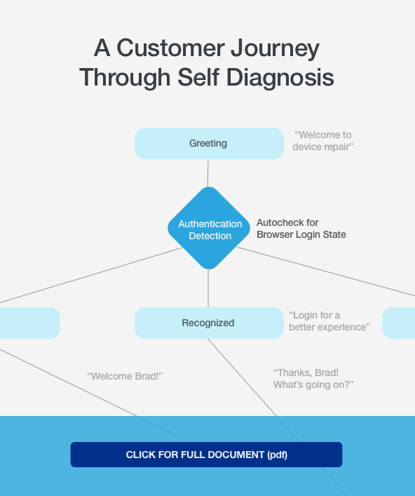 At the time, the product managers on this product had limited vision about what this self-diagnosis could do and understand. They were very MVP-focused and if it reduced any call volume it'd have been considered a win for them. Anything outside of that was seen as scope creep. It was early in my UX experience, but found the lack of "big picture" as well as the disinterest in details from the product managers very frustrating.