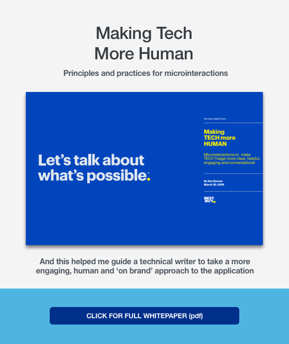 However, this was precursor to the Best Buy intelligent chat, and this triage application didn't not have the flexibility nor logistics to use natural language processing. It did eventually, with a newly-formed CX team's guidance, roll into a triage model currently used for all Best Buy-supported products.