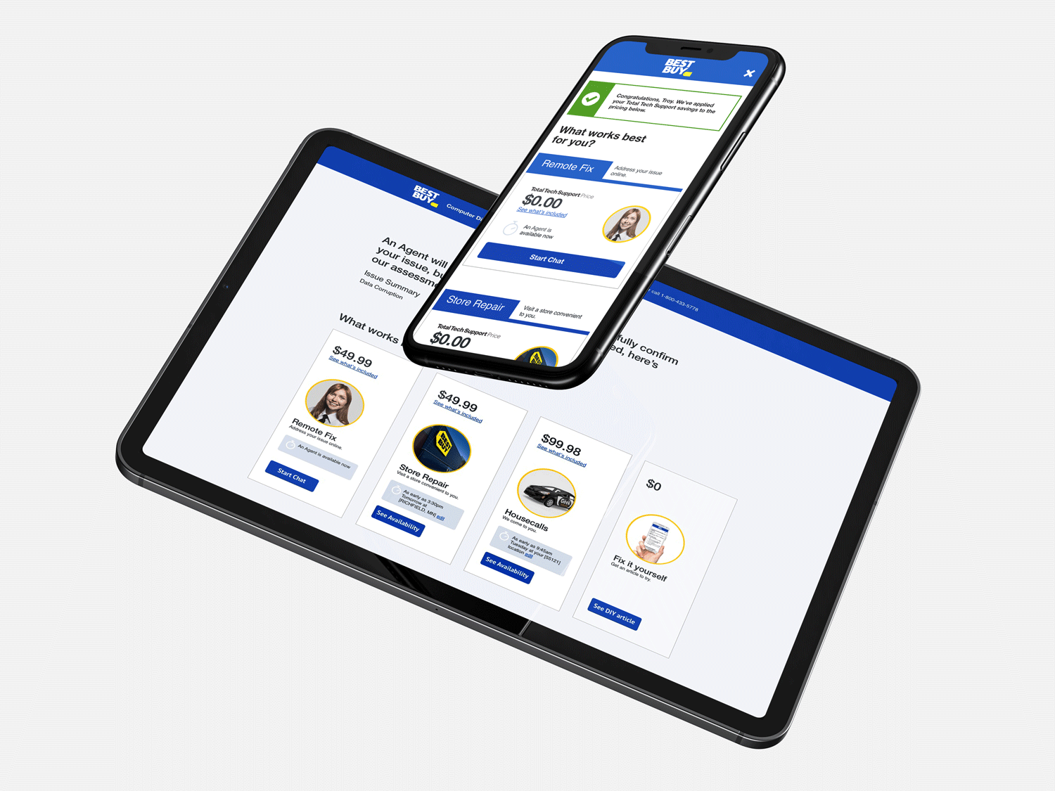 Best Buy's AI-Assisted Self-Diagnosis is a fully responsive, concept-to-release microsite embedded in BestBuy.com to help customers self-assess hardware and software issues with the power of Geek Squad's twenty-five years of call transcripts and troubleshooting models.