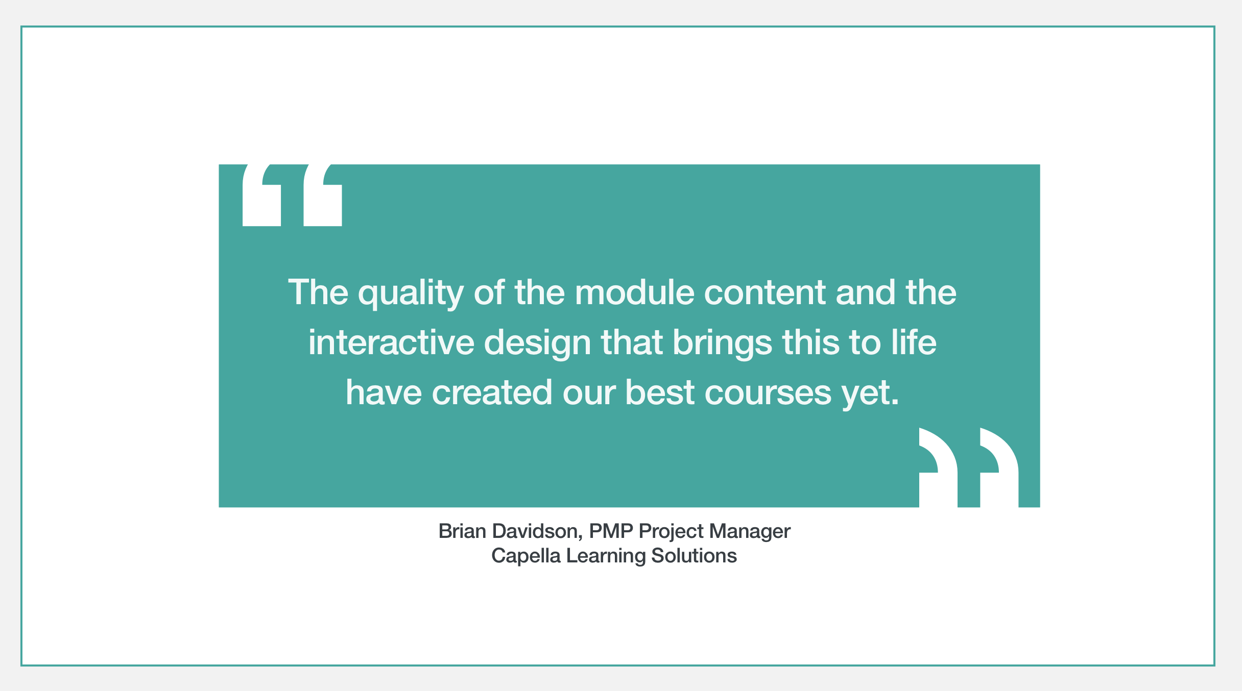 Clients like Capella University utilize Chameleon as a SaaS. Teams of writers and designers use it to build courseware for their PhD, doctorate, masters and bachelor degree students.