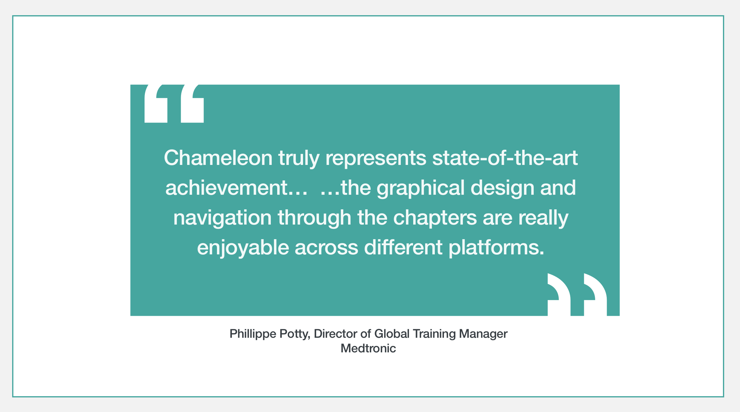 Sales teams train with Chameleon course, and those teams in turn use the courseware to train surgeons and physicians on how to use the latest medical devices and pharmaceuticals.