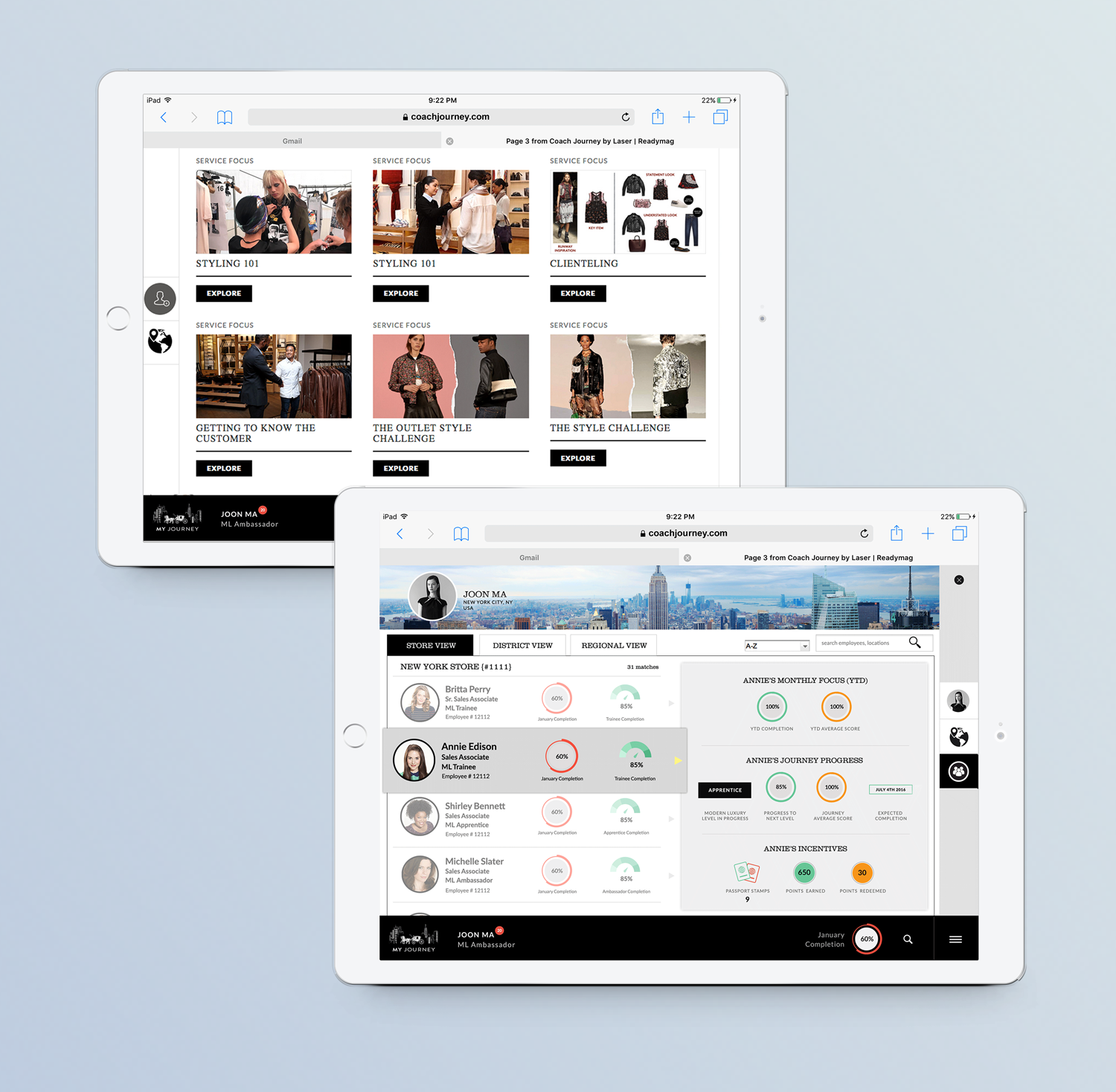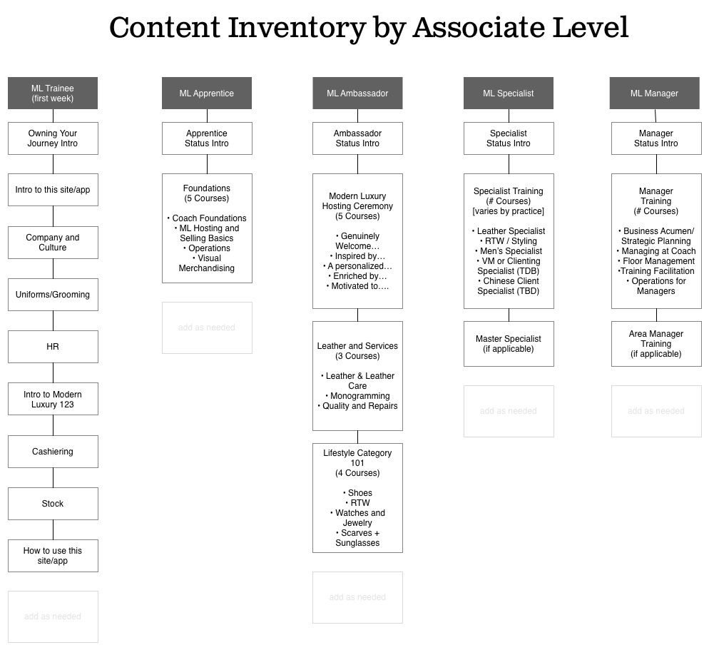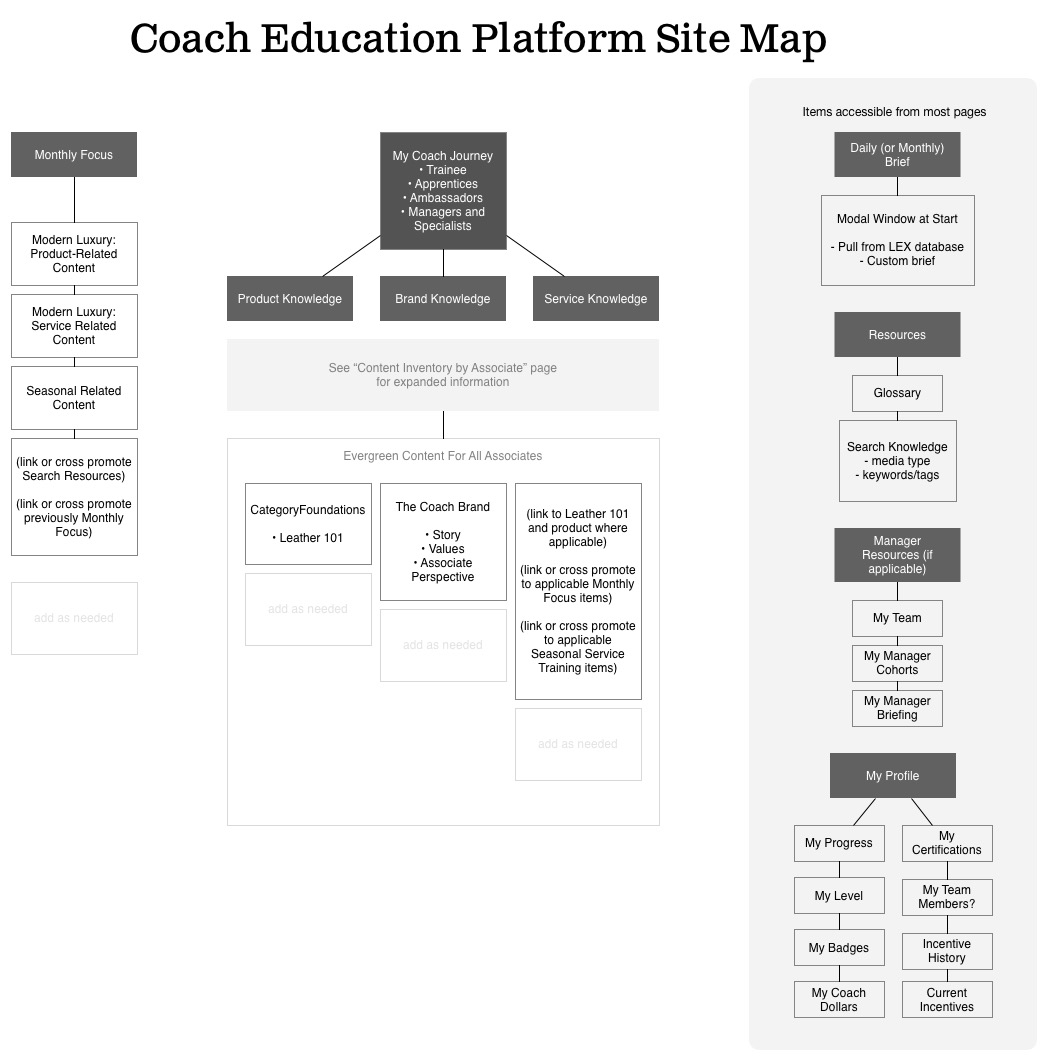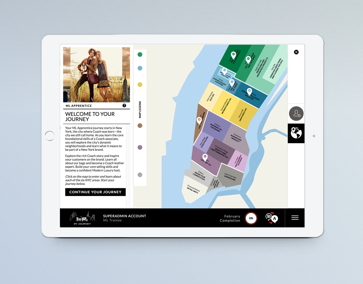 To project and maintain Coach’s luxury brand status, we needed to make sure that guests had a consistent experience in all their stores worldwide. The Coach Journey is a branding training platform for internal communications and training. It houses Chameleon, which guides employees’ professional journey.